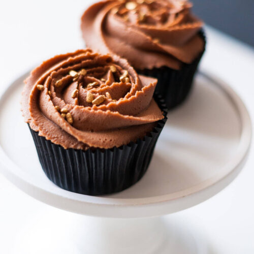Verser la ganache obtenue dans une poche à douille munie d’un embout cannelé et décorer les cupcakes refroidis, parsemer de petits sprinkles à votre guise.